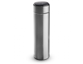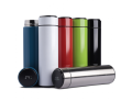Garrafa térmica em aço inox com parede dupla isolada a vácuo, com capacidade até 450ml com infusor. Tampa rosqueável com anel de silicone para vedação.