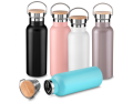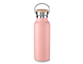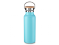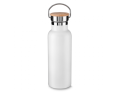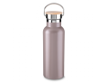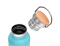 Garrafa térmica em aço inox com parede dupla isolada a vácuo, com capacidade de até 500ml. Conserva líquido quente por até 8 horas e líquido frio até 12 horas. Tampa com revestimento em fibra de bambu. Alça em metal. Detalhe cromado. Pintura fosca.